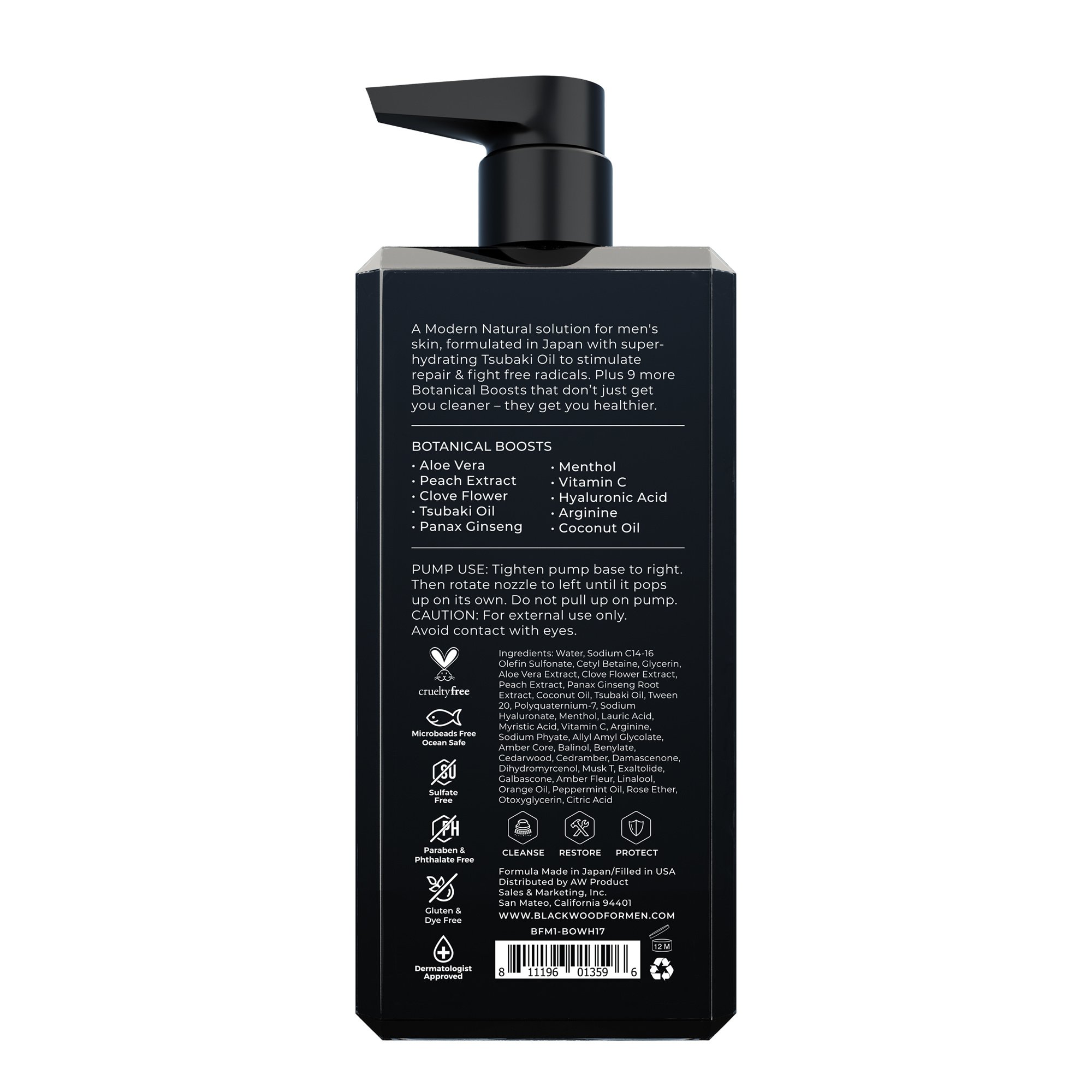 The perfect update to a potent classic. Our new Pure Moisture Body Wash features an even cleaner formula with more powerfulBotanical Boosts, includingPanax Ginseng&Tsubaki Oil-- two powerful antioxidants that you won't find in other men's products.Ginsenghelps stimulate circulation while fighting inflammation, acne & aging signs.Tsubaki Oilpenetrates skin to hydrate deep & heal complete. Working in concert with a dozen otherBoosts, they create a natural symphony for skin, withMentholto cool,Arginineto repair &Peach Leafto protect. It's the ideal cooldown after a tough workout, or wakeup call after a long night out. Plus it lathers up quick and rinses off even quicker, with none of the filmy residue or greasiness of other body washes. Step up your shower with this unique Modern Natural solution for men's skin!