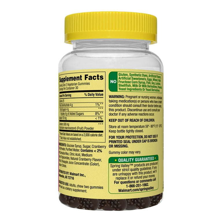 Spring Valley Cranberry Gummies Dietary Supplement, 500 mg, 60 Count Spring Valley Cranberry Gummies Dietary Supplement, 500 mg, 60 Count Spring Valley Cranberry Gummies Dietary Supplement, 500 mg, 60 Count