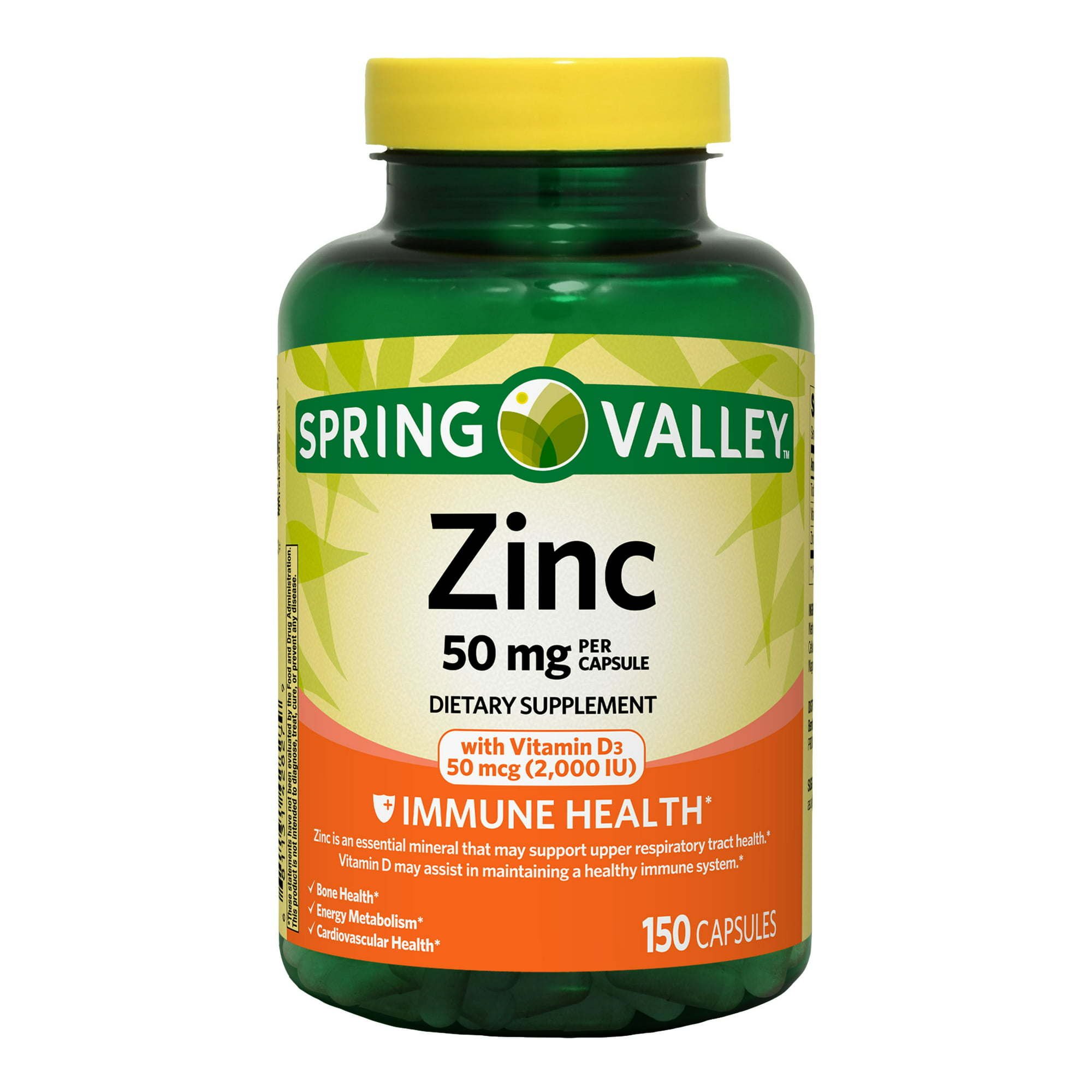 Spring Valley Zinc with Vitamin D Capsules Dietary Supplement;  50 mg;  150 Count Spring Valley Zinc with Vitamin D Capsules Dietary Supplement;  50 mg;  150 Count Spring Valley Zinc with Vitamin D Capsules Dietary Supplement;  50 mg;  150 Count
